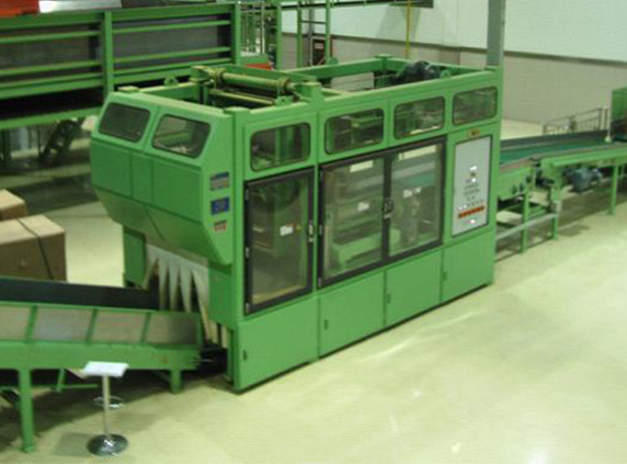 葉片(垛)垂直分切機用于煙草制絲生產(chǎn)線上,對醇化、拆包后的煙包進行切片處理,使煙片易于松散、回潮均勻。該設備主要由框架式模塊結(jié)構(gòu)組成,具有外形美觀、操作便捷、安全可靠、生產(chǎn)適應性強(額定工藝流量1000kg/h~9600kg/h)等優(yōu)點。切片刀數(shù)可在2~5刀范圍內(nèi)可調(diào)。