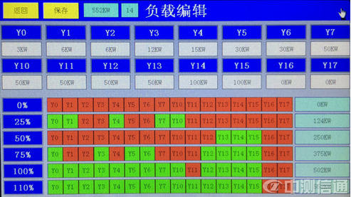 如圖(100KW控制圖):首先設置各輸出口功率:Y1~Y17,功率從小到大設置。再設置25%,50%,75%,100%,110%,該由那些負載投入,設定后按返回鍵。